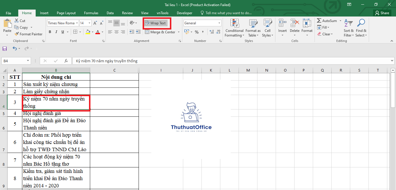 2.3 Kết hợp giữa nhập nội dung và sử dụng Wrap Text
